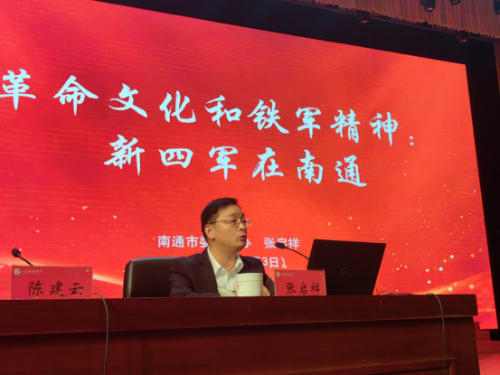 近日,南通市委党史工作办公室副主任张启祥赴南通中学作题为《革命文化与铁军精神:新四军在南通》的专题报告。南通中学党委书记鞠九兵、校长陈建云参加活动,全校2000余名师生共同聆听了报告。