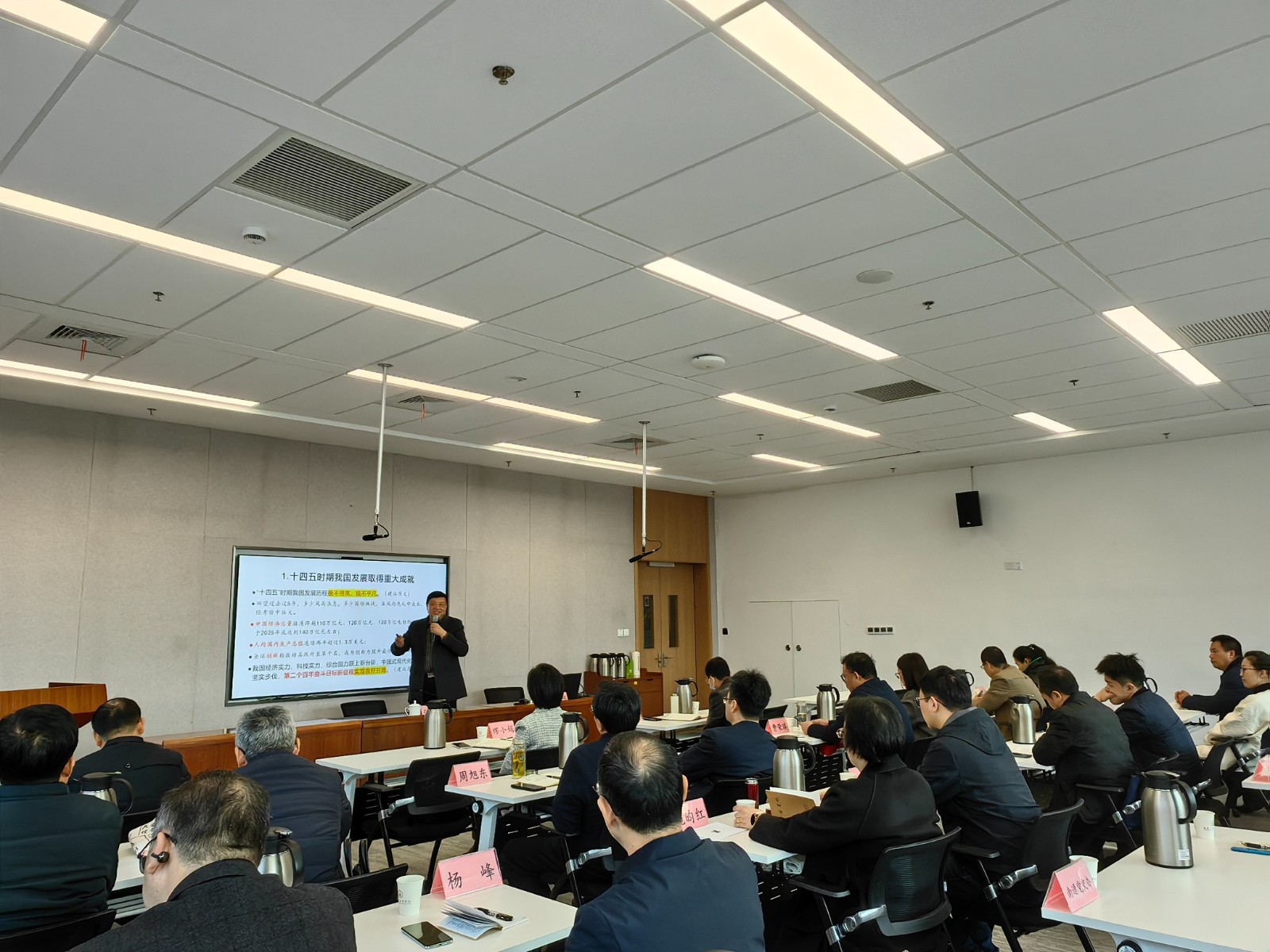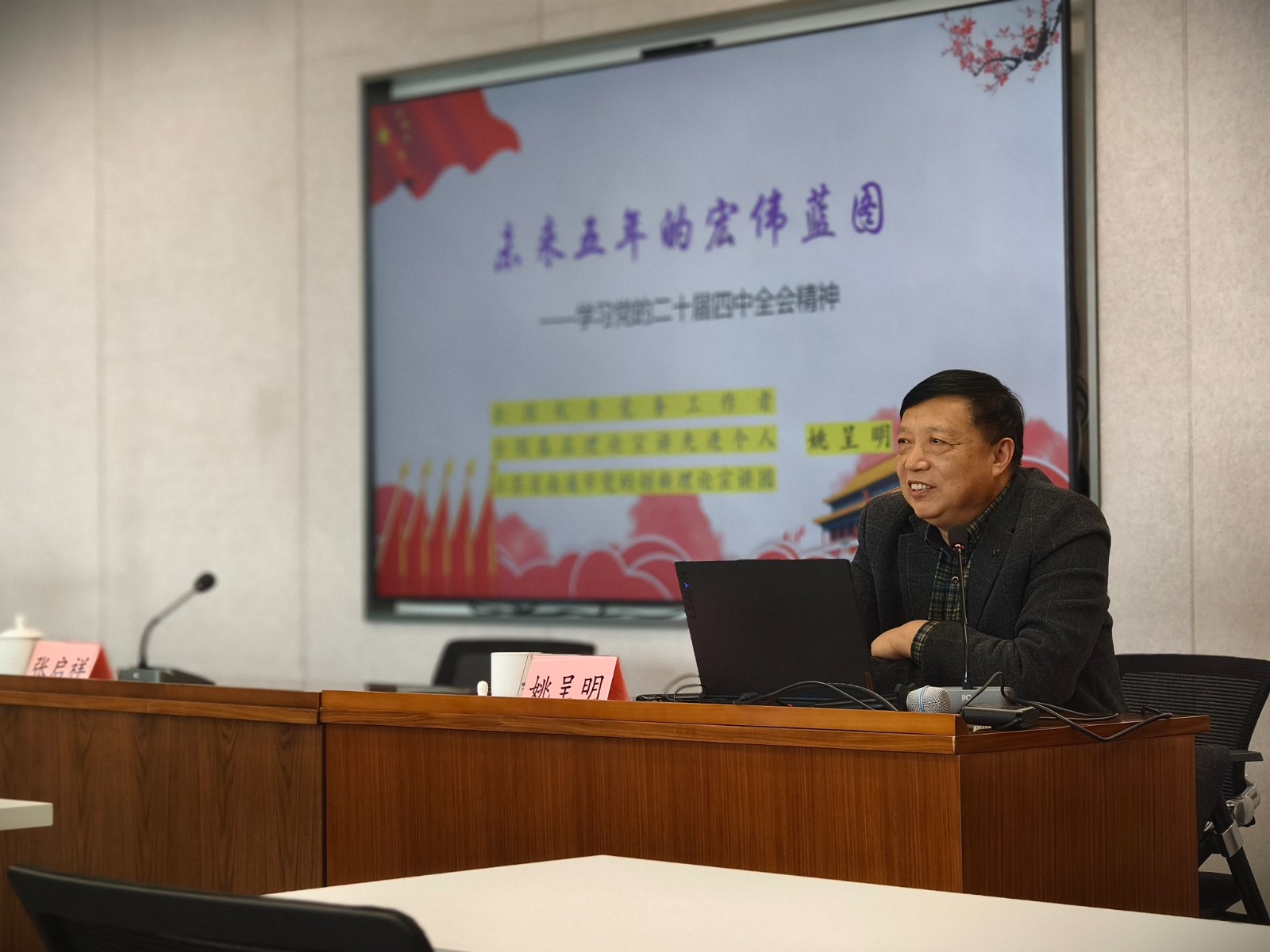 本次报告会邀请了全国基层理论宣讲名师、全国优秀党务工作者姚呈明作专题辅导。他以《未来五年的宏伟蓝图》为题,从“重大成就与国内外的形势”“经济社会发展的目标任务”“共同推动宏伟蓝图变现实”三个方面,对党的二十届四中全会精神进行了深入解读。授课中,姚呈明运用翔实的案例、群众的语言和历史的视角,将复杂的理论转化为通俗易懂的解读,对与会人员准确理解全会精神、把握核心要义、指导工作实践具有重要的启发和帮助。